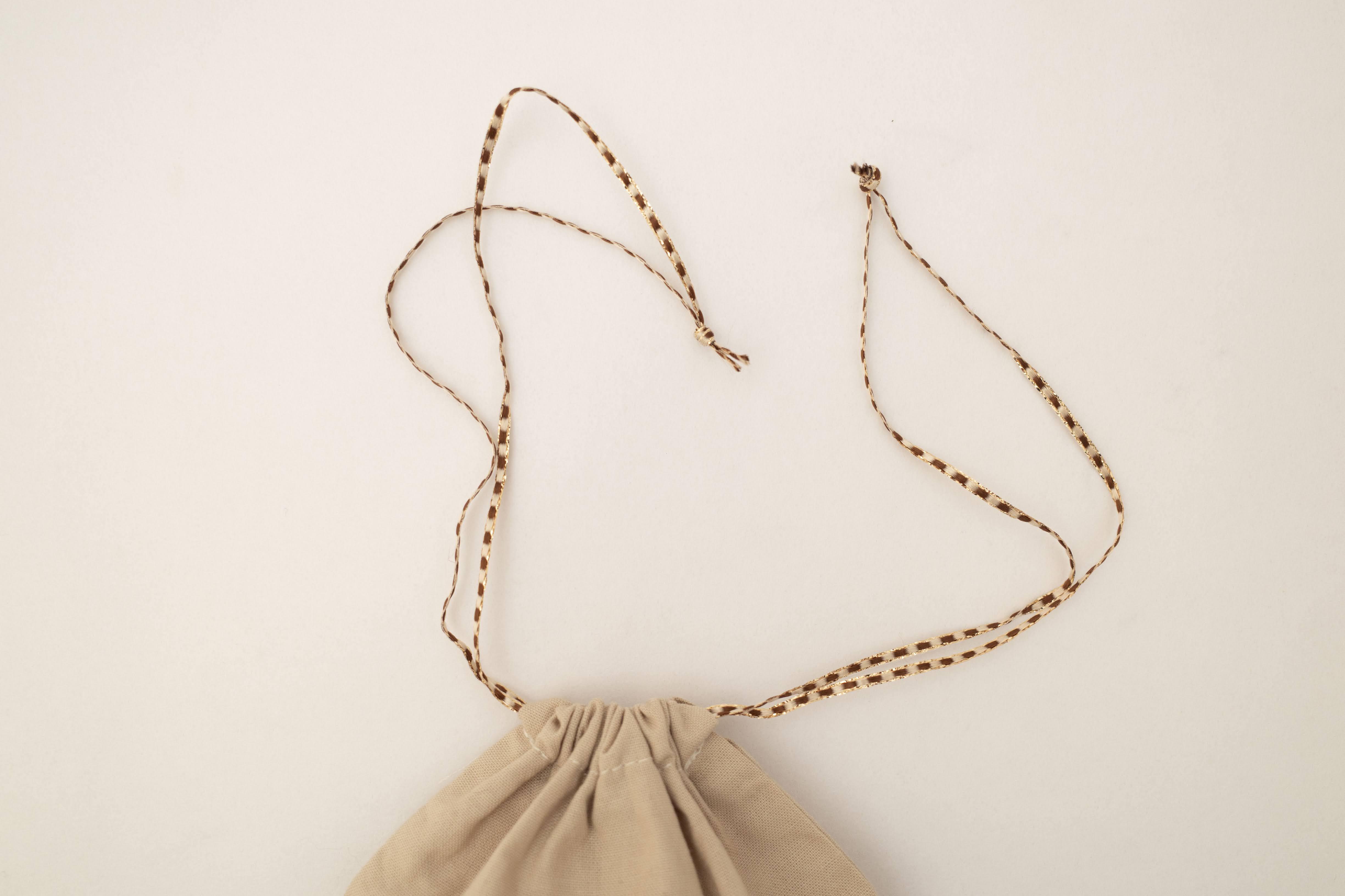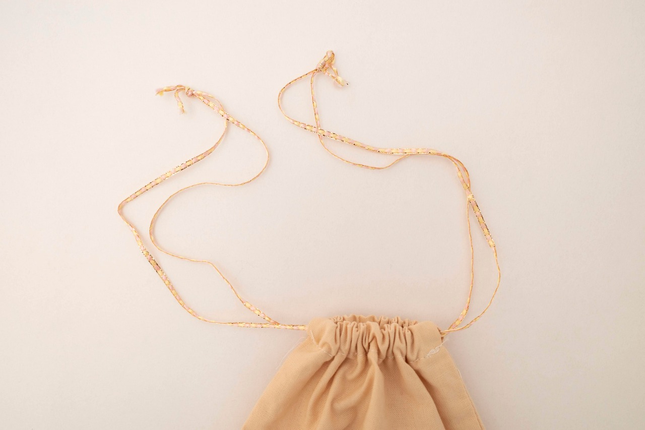 繊細なまばゆさを放つリボンを纏うカカオ染巾着